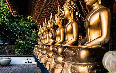 • Sculptural Buddha statues and ritual spaces