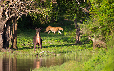 Yala offers one of the highest leopard densities in the world, making it the premier destination for big-cat sightings alongside elephants, sloth bears and a rich variety of birdlife.